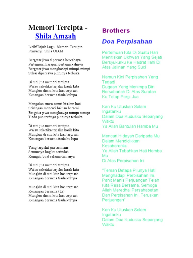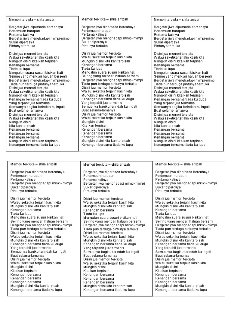 Lirik Lagu Memori Tercipta Pdf